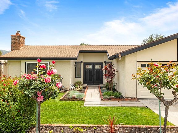 Welcome to this charming single story residence located at 150 North Donna Street. Enjoy 1393 sqft of living space accompanied by 3 bedrooms and 2 full bathrooms. The exterior of this home features a lovely yard adorned with beautiful rose bushes. Upon entering you are greeted by a front entry that leads to the inviting living room with tall vaulted ceilings centered around a wonderful fireplace. Enjoy the openness of the living and dining area which also flows to the wonderful kitchen, complete with custom cabinetry and ample storage and countertop space. Next, step outside the large sliding glass door to the delightful and large private backyard that is complete with a wonderful patio space, perfect for entertaining or enjoying an evening soaking in the mountain views. Additionally, enjoy the mature tangerine, lemon, and green apple trees. Heading back inside and down the hall you will enjoy the convenience of the attached 2 car garage complete with built-ins. Next you will find the remaining 3 bedrooms and 2 full bathrooms. The first bedroom features a sliding glass door to the side yard. The hallway bathroom features a shower + tub. The primary bedroom features views of the backyard, two closets, an ensuite bathroom, and a walk-in shower. Additional notable details of this home include: Central A/C, Newer roof, Leased solar panels, small RV parking potential, and more. Enjoy life in a wonderful Oak View neighborhood.