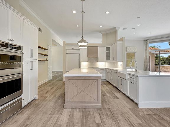 Stunning 4/3.5 home in Westport! Roof (2019). AC (2022). Impact glass windows, 12' impact sling glass door, accordion shutters & impact garage door. Pool/travertine deck built in 2013 by Van Kirk Pools features Salt Water system and heater. Open layout w/ 12' volume ceilings & 8' interior doors. Renovated kitchen w/ quartz counter tops, large island, double oven w/ warming drawer, paneled fridge and dishwasher, built-in wine fridge, microwave drawer & pantry. Tile plank flooring throughout main living areas, real hardwood in primary. Built in cabinets in all closets. Primary bath - stand alone tub, shower w/ frameless enclosure. Sonos system & ADT sec w/ 11 cameras (interior/exterior). Custom curtains & Roman shades in living area & plantation shutters in secondary rooms.