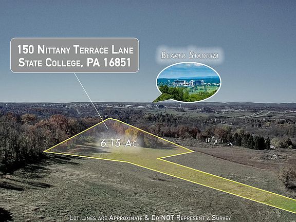 Build your dream home on this beautiful 6.15-acre homesite offering unmatched views of Beaver Stadium and Mount Nittany! This exceptional property combines the best of both worlds — privacy, nature, and tranquility, all while being just minutes from downtown State College and Penn State University. Enjoy breathtaking sunsets, abundant wildlife including turkey and deer, and the peaceful charm of a country setting — without sacrificing convenience. Property Highlights: 6.14 acres of usable land — spacious, scenic, and ready to build, Panoramic views of Beaver Stadium and Mount Nittany, Public water available nearby for buyer hookup, Perked for a conventional septic system, Electric and natural gas already on the lot, Builder-ready — bring your builder and start your vision, Private location, yet close to shopping, schools, and Penn State events. Whether you’re looking for a peaceful retreat, a full-time residence, or a place to enjoy game-day weekends in style, this property is ready to make your dream a reality. Call today for more information or to schedule your private tour of this stunning homesite!