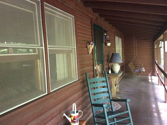 Gorgeous setting,level lot and just minutes from the heart of Maggie Valley with this "D Log" log cabin with metal roof, 3 bed room, 2 bath, open floor plan with floor to ceiling stone fire place & vaulted ceiling, laundry room, screened in rear deck with hot tub, 11X20 outbuilding, lower driveway for possible RV parking, and a wonderful covered front deck.