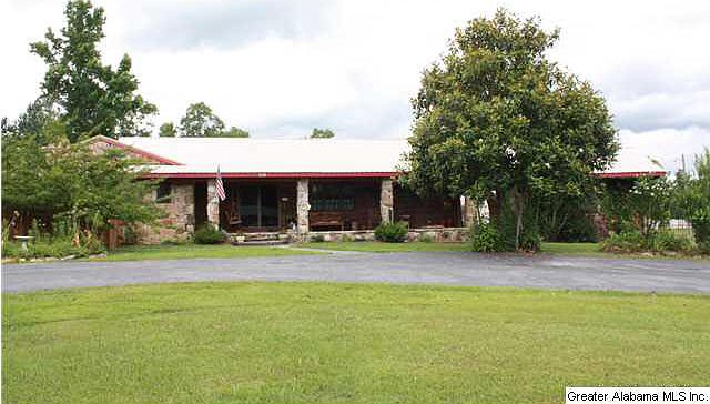 Pell City home with acreage!! MOTIVATED SELLERS! Do not be deceived by this two bedroom home! This home has it all! Pool, barn, two detached garages, and a pond! This 2br/2ba (possible 3rd br if convert office) home is a must see! The gorgeous sun room/great room features floor to ceiling windows, which have been custom tented, and stunning rock fireplace with the most spectacular view of the in-ground, rock-lined pool! The pool is very large and unique with tons of entertainment space and is equipped with a stone pit smoker grill and privacy fence. The kitchen and living room have slate counter tops and floors. As if all of this wasn't enough, the home is also being sold with 4+ acres (to be surveyed out of 10 acres), a very large barn, commercial sized garage with high ceilings and a steel beam with room for RVs on the side, another detached garage that can hold two cars, plus a garage attached to the house.