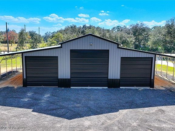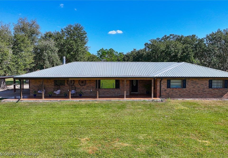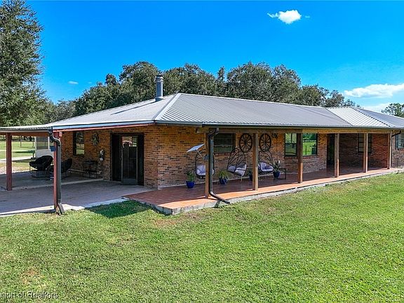 Come discover this stunning brick ranch-style home, perfectly situated on a sprawling 9.23 acres of picturesque land. Featuring 3 bedrooms, 2.5 bathrooms, along with a separate 3 bedroom 1 bath mother-in-law suite. This property offers an abundance of space and versatility. Step inside to find a welcoming living room adorned with bay window seating and a panoramic picture window that invites the beautiful and peaceful views of the surrounding acreage. The large family room has a cozy fireplace, creating a warm and inviting atmosphere for gatherings. The Chef's Kitchen is a culinary delight with abundant custom cabinetry, beautiful granite countertops, stainless steel appliances, including a French-door refrigerator, dishwasher, microwave, double wall ovens with a convection feature, a 5 burner gas cooktop and stainless steel hood, making this kitchen a true masterpiece. The adjacent laundry room includes custom cabinetry, a convenient wash sink and extra storage space. You will love the very spacious primary suite with a spa-like bathroom and large walk in closet. The additional bedrooms are very spacious as well. If you love spending time outdoors or entertaining then you will love the additional features this property offers! The fully screened in pool, two additional screened in porches and outdoor kitchen with a bar are perfect for all of your entertaining needs. In addition to all of these great features, this property includes a BRAND NEW 35x42 metal barn with 2 covered parking areas on each side, leaving you with plenty of storage for all of your recreational vehicles or so many additional possibilities! This home features a metal roof, whole home water conditioning system, newly landscaped entry way with palms and fruit trees along with two separate gated entries, both with key pad access. The property has a large pond and is fully fenced and cross fenced for animals, including an open pole barn and separate animal pens. The possibilities are endless here! Whether you are looking for the perfect place to start your own family homestead or your peaceful countryside retreat, this place has it all. The sunrises from the back porch and the sunsets from the front porch are a gorgeous added bonus. This property is a must see!