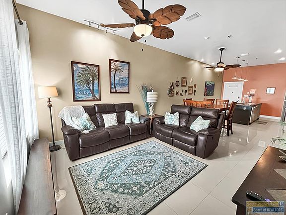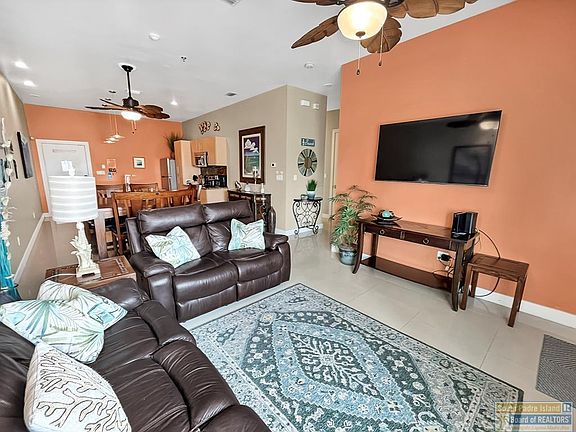 Enjoy Island living in this convenient ground floor, 2-bedroom, 2-bathroom condo! The open floor plan boasts elevated ceilings, granite counters, stainless appliances, washer/dryer and beautiful porcelain tile floors throughout. New water heater and A/C unit in 2024. This condo sells with all furnishings and fittings needed to make it a turnkey vacation rental or second home. Enjoy the resort-style amenities which include a fitness center, pergolas, BBQ grills, outdoor seating, 4 hot tubs, a heated pool, a regular pool, an observation deck, and more. Walking distance to the beach access on north side of Holiday Inn Hotel and Beach Waterpark. This is a must-see property with a Motivated Seller! This unit will be unavailable to show April 17 - 21 so schedule your showings now!