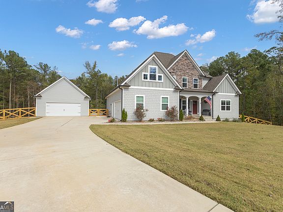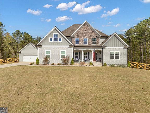 Welcome to this beautifully maintained Jeff Lindsey home in the highly desirable Northgate subdivision of Newnan. Built in 2018, this spacious 5-bedroom, 3.5-bath home offers 3,641 sq. ft. of thoughtfully designed living space and sits on a plumbed, HVAC-installed, ready-to-finish basement. The main level features a large primary suite with a cozy sitting area, trey ceilings, and a luxurious ensuite complete with granite counters, a tiled shower, separate garden tub, and an oversized walk-in closet with custom built-ins. The open floor plan highlights a two-story foyer, formal dining room with coffered ceiling, crown molding, and wainscoting. The chef's kitchen is a showstopper-featuring abundant cabinetry, a walk-in pantry, stainless steel appliances including double ovens and a gas cooktop, granite countertops, tile backsplash, a large island with breakfast bar, and a breakfast room that overlooks the private, newly landscaped backyard. A spacious laundry room conveniently located off the kitchen adds extra functionality and storage. Upstairs, you'll find four additional bedrooms, two full Jack-and-Jill style bathrooms, and a versatile loft/playroom. The unfinished daylight basement offers 11-foot ceilings, plumbing for a bathroom, and double-door access to the backyard-perfect for future expansion or storage. Additional highlights include newer carpet, hardwood flooring in the living room, recessed lighting, detailed trim work, ceiling fans in every bedroom, a recirculating hot water system for instant hot water, and septic tank modifications to accommodate a 6th bedroom in the basement! Outside, the owners have invested over $100,000 in exterior upgrades, creating a true outdoor retreat. Enjoy all-new features including an expansive patio, deck, and beautiful new landscaping surrounding the fully sodded yard and 26x26 detached garage/workshop-all on a quiet cul-de-sac lot. Enjoy top-rated schools, proximity to shopping, dining, and everything Newnan has to offer-this home truly has it all!