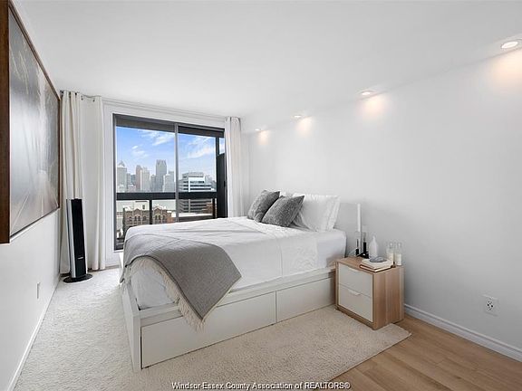 Soaring above the city on the 18th floor, this fully renovated 1-bedroom condo combines luxury, convenience, and unbeatable views of the Detroit skyline. The open-concept design features a bright and spacious living and dining area, a sleek modern kitchen, and two private balconies — including one off the primary bedroom — for the ultimate indoor-outdoor lifestyle. This executive unit also includes underground parking and a storage locker. Enjoy resort-style living with building amenities such as an indoor pool, gym, sauna, party room, and 24-hour security. Located in the heart of Windsor, you’ll be steps from shops, restaurants, the waterfront, and transit. Perfect for professionals, students, and commuters seeking a move-in-ready home with style and comfort. Call today for a private showing.