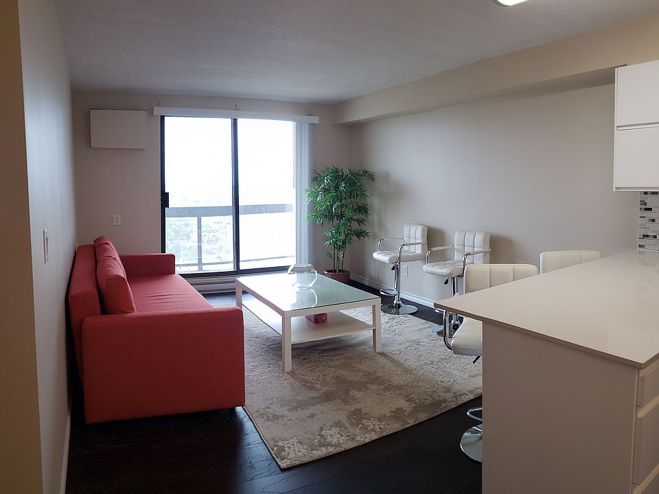 Excellent North-West side with exceptional unobstructed water-view one-bedroom, one-bathroom condo unit with large balcony on 25th floor, at the heart of downtown Windsor, close to waterfront walking trails, public transit, restaurants, etc. A very recently end-to-end renovated unit with brand new stainless still appliances and a built-in Panasonic microwave in a modern kitchen with a large quartz countertop island with lots of extra cabinets. Engineering hardwood, in-unit storage room, blinds, completely renovated bathroom with porcelain tiles, and bedroom with a walking closet. Luxury amenities include an indoor pool, whirlpool, gym, billiard and ping-pong tables, playroom, and sauna. Newly renovated laundry room on the 5th floor, 24-hour security concierge, four large elevators, and a huge common balcony with BBQ.