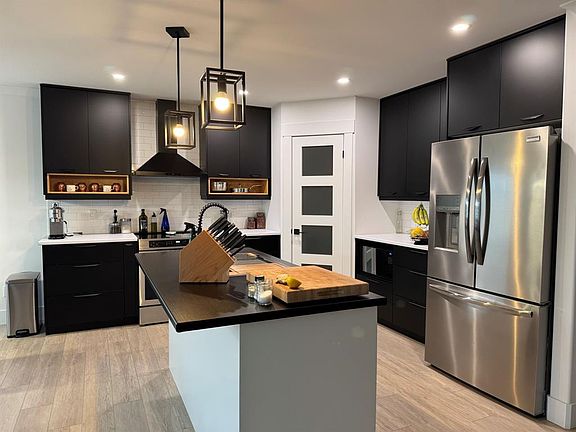 Striking curb appealContemporary designSleek black custom cabinetrySeparate coffee bar areaThoughtful touchesModern finishesLarge windows