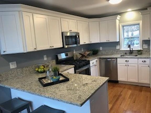 VACANT- Wow! You must come see this private Waltham bungalow with amazing views! This beautifully renovated home is the perfect condo alternative in an ideal commuter location.The property features brand new roof, siding and windows. Step through the front door and you're greeted by gleaming hardwood floors, completely painted interior, and an open concept living space. The kitchen boasts Brand new white shaker cabinets, granite counters, stainless steel appliances, w/ breakfast bar peninsula. LED recessed lighting and a brand new sliding glass door flood the home with natural light. The massive wooden deck has a one of a kind panoramic views The home features 2 bedrooms, plenty of closet space, and main level laundry. The modern bath has brand new fixtures, chic glass tile accents, and a double vanity. Basement area perfect for additional dry storage. SALl new wiring and plumbing make this a turnkey home. 1 year home warranty included if you close within 40 days of executed offer.