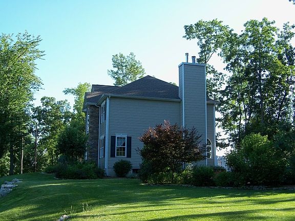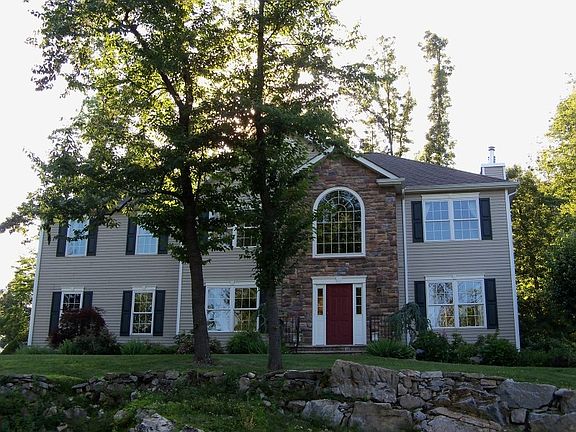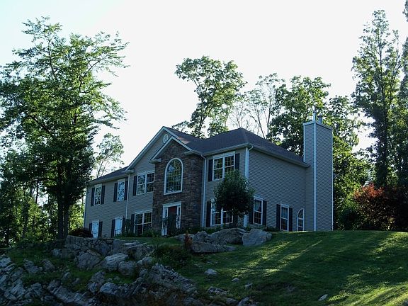 Beautiful & private setting for this colonial style home situated on nearly 5 acres features a large kitchen with custom cabinets, granite countertops, center island & stainless appliances. Additional features include central air, central vac, hardwood floors, & family room with fireplace. Bright & airy 2 story foyer leads to the second floor with a conveniently located laundry room, 4 bedrooms & 2 full baths.The spacious master bedroom suite features tray ceiling, walk-in closets, tiled bathroom with Jacuzzi tub, shower stall & double vanity. Relax outdoors on a maintenance free deck overlooking a tranquil, professionally landscaped yard complete with koi pond & waterfall.
