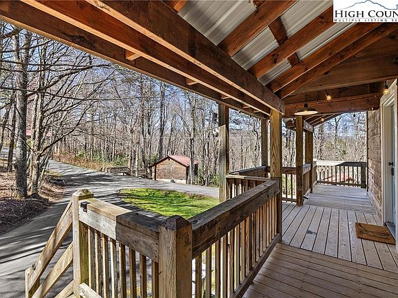 Welcome to this charming two-bedroom two-bathroom cabin, where tranquility and nature embrace you from every corner. Tucked away in the enchanting woods, this cozy retreat offers the perfect escape from the hustle and bustle of everyday life. As you step inside, you'll be greeted by a warm and inviting atmosphere. The open layout seamlessly connects the living area, the dining space, and the well-equipped kitchen, creating a delightful space for relaxation and making memories. The rustic feel and contemporary furnishings add just the right touch of comfort to make you feel at home. Wake up to the gentle sounds of birds chirping and sun rays peeking through the windows, reminding you of the picturesque forest just beyond your doorstep. Step outside and get ready to be captivated by the blissful ambiance that surrounds you. Enjoy the spacious wraparound deck and breathe in the fresh mountain air as you sip your morning coffee or evening cocktail. There's a shared private driveway and large storage shed for added convenience. For those seeking adventure, hike through nearby trails, explore hidden gems, or simply soak in the beauty of nature. Minutes to the heart of Boone and all it has to offer including App State, local shops, restaurants and cafes, Booneshine, Brookshire Park & Trail, Rocky Knob Mountain Bike Park and The Greenway Trail to name a few. Ideal for a full time residence, weekend retreat, short or long term vacation rental. This woodland cabin is a true haven, offering a chance to escape the daily grind and reconnect with nature. Come experience the serenity and charm of this magical retreat today. Furnishings negotiable. Some photos are used in multiple listings and may not be this specific cabin. All floor plans are the same. This cabin also comes with a barn, great for additonal storage or convert to a carport/garage.