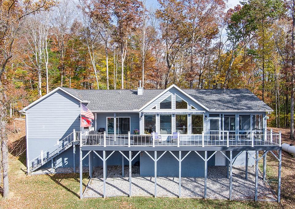 Absolutely stunning home offers exceptional views of Dale Hollow Lake! Looking to slip away from the hustle and bustle and simply relax? This is your home! This 2 bed 2 bath 1824 sq ft home, offers many upgrades and is in excellent condition. A welcoming great room greets you with huge windows, framing the beautiful view of Dale Hollow Lake with a Tennessee mountain background. The kitchen offers custom cabinets, quartz countertops, stainless appliances, hot water dispenser, and under the counter wine cooler. The living room offers a stone propane fireplace, custom built-ins and walk out to screen porch and the massive lake view deck! The primary bedroom has a WIC, and private bath, featuring tile and glass walk in shower, tub and double vanity. Split floor plan offers a second bedroom, full bath, and laundry, just before reaching an oversized 1000 sq ft garage. Upgrades include trex deck, sunsetter awning, fully encapsulated crawl space, custom lightning, gutter guard & more!