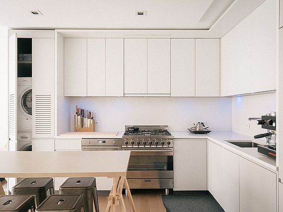 Residents enjoy the full-service perks of 150 Rivington: a warm, wood-accented lobby with a 24-hour attendant; a landscaped rooftop deck with panoramic city views; a fully equipped gym; bike storage; basement laundry facilities; and smart-home controls that let you manage temperature, lighting, shades, and sound from a single intuitive device.