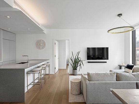 Designed by the esteemed GLUCK+, this stylish residence is moments from exciting restaurants, popular bars, trendy cafes, and boutique shopping. It spans over 1,100 square feet with a wall of south-facing floor-to-ceiling windows and classic city views. Additional features include custom lighting, central heating and cooling, pre-wiring for a Crestron Smart Home system, and an in-unit Bosch washer and dryer.