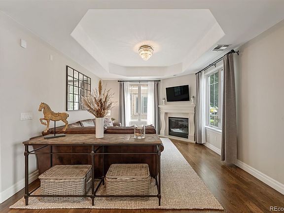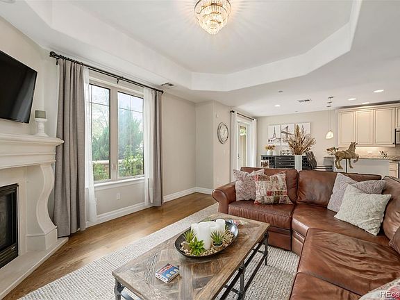 Cherry Creek perfection, ideally located close to world-class dining and shopping, plus parks, trails, downtown and more. This elegant condo features an open floorplan with beautiful kitchen showcasing stainless appliances, granite countertops, 42” cabinets, custom tile backsplash and breakfast bar. You’ll love the ambiance that the coffered ceiling and cozy gas fireplace creates in the great room. Entertaining is a dream with the French door off the dining area onto your covered patio that creates your own entrance without going through the lobby. The primary suite features a five-piece bath with custom shower and walk-in closet. The second bedroom, hall bath and laundry complete the layout. Two garage parking spaces and a storage closet provide plenty of room for all your gear. This delightful home is move-in ready, all you have to do is unpack and start enjoying that Cherry Creek lifestyle!