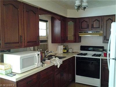 Home being sold to settle an estate. Bring all offers in! Brick ranch with detached garage. Needs work; Brand new dimensional roof just installed. Cherry cabinetry in eat-in Kitchen with laminate counters, stainless sink, vinyl flooring. Hardwood flooring on most of first floor. Living room has woodburning fireplace with painted mantel. Covered front porch. Basement has a porcelin sink & commode--shower head has not been used, laundry hook ups, fruit cellar. No a/c but offers whole house fan. Mechanicals need replaced, upgraded