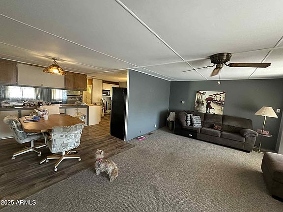 nice older double wide with some renovations done already and priced to sell. Located in one of the least expensive parks, nicely maintained park. There is a secluded patio area. Open concept plan and an Arizona room for added space. For the money this is a great home.