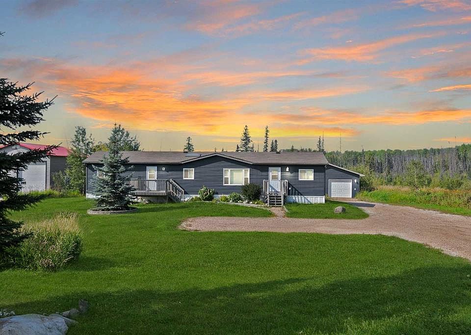 Welcome to 150 Hopegood Drive; Discover your private retreat on this 1-acre property in Anzac, nestled among mature trees that offer both serenity and striking curb appeal. Just minutes from Gregoire Lake’s shores, the boat launch, day-use area, and the Anzac Rec Centre, this home offers the perfect balance of relaxation and recreation. Whether it’s peaceful walks by the water, a day of fishing, or quading right from your backyard, you’ll always find something to enjoy in this serene country setting. Inside, the open-concept layout features a spacious foyer leading to a bright living room with a cozy corner electric fireplace and custom mantle. The kitchen blends style and functionality, offering abundant cupboard and counter space, a walk-in pantry, and a skylight that fills the room with natural light. The adjoining dining area opens to a two-tiered back deck with a privacy screen on the upper level—perfect for afternoon sun, outdoor dining, or simply relaxing with a view. The home offers two comfortable bedrooms at the front with a full 4-piece bathroom, while the private primary suite boasts a walk-in closet and 4-piece ensuite. All bedrooms include ceiling fans and blackout blinds for comfort. A separate laundry and storage room adds convenience to the thoughtful layout. Outside, the backyard is a sunny retreat backing onto peaceful green space. Municipal water and sewer hookups provide peace of mind. An extra-long driveway allows ample parking for vehicles, RVs, and toys, while the oversized 29’ x 26’ heated garage is a dream space with soaring ceilings, plenty of power outlets, and room for a full workshop. Here, you’ll enjoy the quiet, space, and peace that define Anzac’s country lifestyle—paired with all the comforts of home. Schedule your tour today!