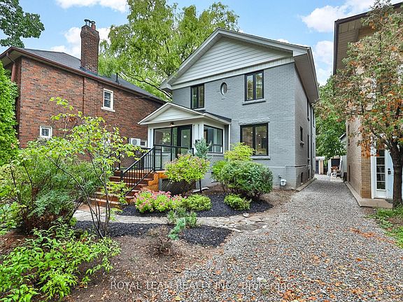 **Unique Custom-Designed Home Fully Renovated** Welcome to this stunning, fully renovated custom home just minutes from downtown Toronto. Designed with an open contemporary concept, the main floor boasts brand-new appliances, a spacious living/dining area, and access to a private wooden deck perfect for entertaining. A convenient main-floor office and a powder room with elegant marble flooring add to the homes functionality and style. The second floor features **4 spacious bedrooms**, including a luxurious **primary suite with a 5-piece ensuite, walk-in closet, and custom built-ins**.The **finished basement** offers incredible flexibility with 3 bedrooms, 2 washrooms, and a separate entrance easily convertible into an income-generating apartment.At the rear, a detached garage provides additional potential and can be converted into a separate LANEWAY HOUSE or income suite, similar to neighboring properties.This home is a perfect blend of modern design, comfort, and investment opportunity in a highly desirable location.
