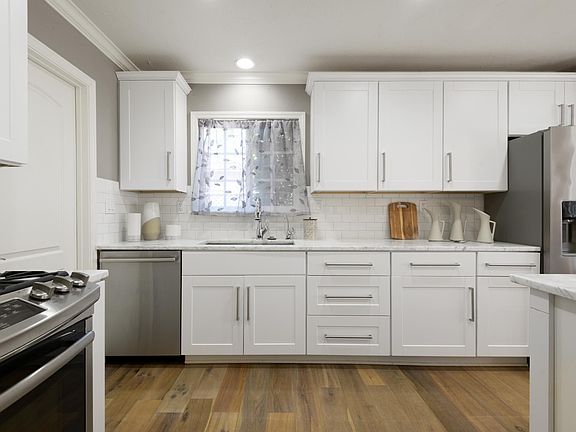 Very sweet home in a sweet neighborhood! Beautifully remodeled 3 bed 3 full bath single level ranch style home in a quiet walking neighborhood. This is the home your buyers have been waiting for. Don't lift a finger here. Stunning great room w/ wood floors & 2 sets of French doors accessing the redone rear yard paver patio & raised planters. Dining area off the kitchen w/ center island, marble counters, stainless appliances, & contemporary cabinets. 3 private bedrooms & 3 fully remodeled baths. Primary bedroom (16x13 was originally 2 rooms) enjoys sliding doors to rear yard, crown moldings and a spectacular redone tile bathroom. Other amenities include: air conditioning, separate laundry room, newer wiring, crown and base molding throughout, recessed lighting plantation shutters, 2 car garage and so much more. Turnkey home walking distance to the Magnolia center, El Camino school and the new Shalhoobs restaurant. Delightful home and neighborhood. Won't last.