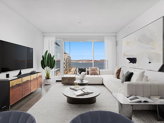 Experience refined living in this 7th-floor residence with breathtaking Boston Harbor views. This 2-bedroom + den, 2.5-bath home offers two parking spaces and stunning vistas from the living room and both bedrooms. The gourmet kitchen boasts Wolf & Sub-Zero appliances, wine fridge, marble countertops, expansive island, and custom Italian BAMO cabinetry. The primary suite features two large closets and a spa-like bath with heated floors, soaking tub, and glass shower. Additional highlights include a laundry room, abundant storage, bespoke hardware, Sherle Wagner bath fixtures, and Phillip Jeffries wall coverings. Residents enjoy world-class St Regis amenities: indoor pool, hot tub, sauna, steam room, spa, fitness center, harbor lounge, and 24-hour concierge.
