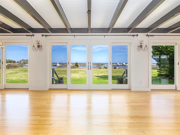 Upstairs, the primary suite features 2 fireplaces in the bedroom and southern facing sliding glass doors leading to panoramic views of the bay and Fire Island. The primary bath boasts a spacious walk-in shower, pedestal tub and an additional fireplace. The wrap second floor landing leads to a full bath and 2 additional bedrooms each with water views and fireplace.