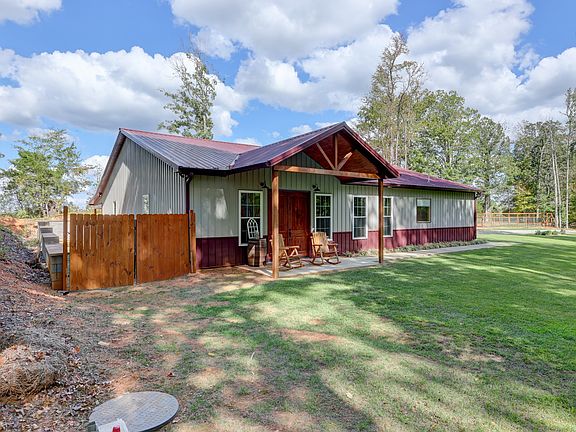 Welcome home to this breathtaking barndominium, where quality craftsmanship meets country serenity. Nestled on 4 private acres, this corrugated metal-constructed home with a durable metal roof (complete with leaf guard) was built with exceptional attention to detail and energy efficiency in mind—featuring spray foam insulation throughout the entire structure, 4” to 6” thick, keeping the home comfortable year-round. Step through the grand 8-foot solid pecan wood double doors into a bright, open-concept living space. Beautiful floors flow throughout, leading to a spectacular vented propane fireplace—the perfect centerpiece for cozy evenings. The custom kitchen is a chef’s dream, featuring marble countertops, a farmhouse sink, custom cabinetry, stainless steel appliances and a spacious open pantry.