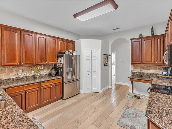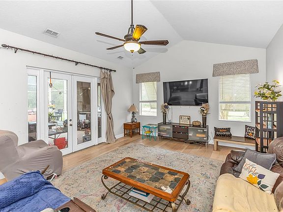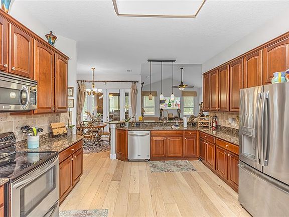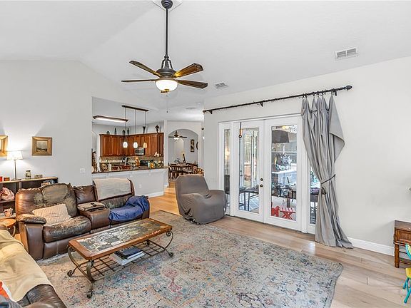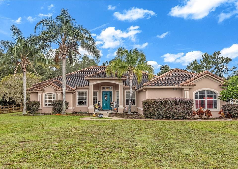 Stunning 4-Bedroom Home with Office on 2.5 Acres – Perfect for Country Living and Entertaining. Welcome to this beautiful 4-bedroom, 3-bathroom estate that perfectly blends luxury and country charm. Situated on 2.5 acres, this home offers room to breathe, play, and entertain—plus it’s zoned for horses, chickens, and goats! Step inside to find brand new hickory wood flooring throughout and a spacious open layout. The gourmet kitchen is a chef’s dream, featuring premium appliances and plenty of space to gather. The adjacent family and dining areas flow effortlessly, creating the ideal setting for everyday living and special occasions. The massive primary suite is your private retreat, complete with a separate sitting area, two walk-in closets, and a spa-inspired bathroom with a walk-in shower. Each of the additional bedrooms is generously sized, offering comfort and versatility for family or guests. You’ll also love the dedicated office, perfect for working from home, and the laundry room that comes equipped with a washer and dryer for convenience. Step outside to your fenced backyard oasis featuring a summer kitchen with a built-in grill, refrigerator, and sink—perfect for entertaining under the stars. A three-car garage provides ample storage and parking. With a tile roof, beautiful craftsmanship throughout, and plenty of space for both indoor luxury and outdoor adventure, this property truly has it all.