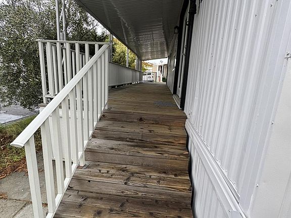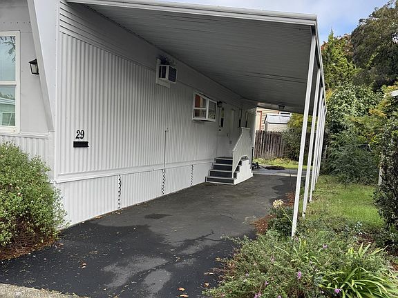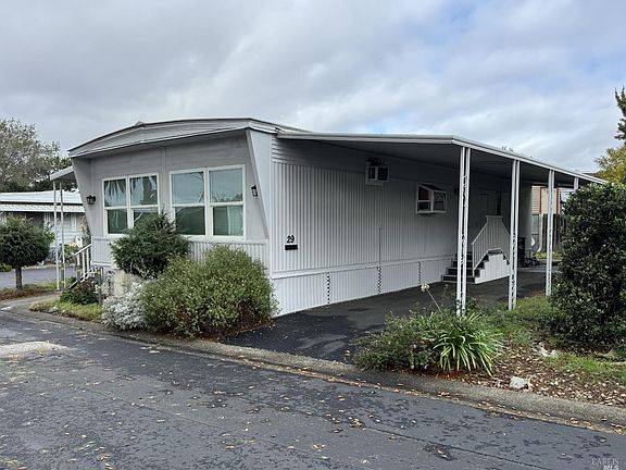 Refreshed and move-in ready! This updated home in a desirable senior park features a new roof, open living and dining areas with built-in cabinetry, and a kitchen with refrigerator and dishwasher. The spacious primary bedroom offers a private deck and ensuite bath. Additional highlights include laminate wood-look flooring, French doors, updated windows, indoor laundry with washer and dryer, covered parking, and a private yard. Relax on the large covered deck and enjoy community amenities including a pool, dog park, and clubhouse.