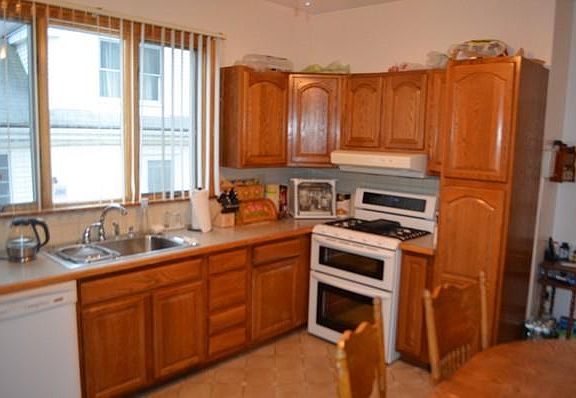 Beautiful and bright second and third floor 4 bedroom unit. Gas Heat, Central Air Conditioning. All hardwood floors, beautiful ceramic floor bathroom with jacuzzi. Beautiful kitchen cabinets, disposal, lots of closet space. Everything was updated 3 years ago. The stove was purchased last year. Washer and dryer are in the basement. Three season porch. Basement has an additional storage space. Nice deck and yard. Off-street parking with 2 garage spaces. Great neighborhood! convenient location. Three minutes drive from Watertown Mall, 5 minutes from Storrow Drive.