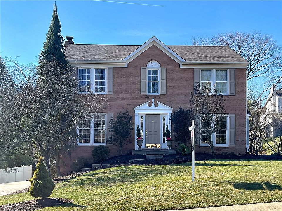 Attractive brick front colonial features a two-story entry and open floor plan. You'll find elegant touches such as wood 6-panel doors, rich crown moldings, and gleaming hardwood floors in many rooms. Den/living room offers privacy with French doors, formal dining room boasts a lovely bay window. The heart of the home is the open kitchen and family room... fully equipped with all appliances, center island, built-in desk, and a pantry. Cozy up in the family room by the fireplace. Spacious bedrooms include a master suite w/vaulted ceiling, walk-in closet, and full bath w/dual vanity. The finished lower level offers a game room, half bath, and laundry room with access to yard. Outdoor living is a dream with a spectacular partially covered rear deck featuring Trex flooring, a vaulted ceiling, a log-burning fireplace plus a level fenced backyard is ideal for play & a custom shed with a 220 line. Located in the desirable community of Dashwood South on a dead-end street with sidewalks!