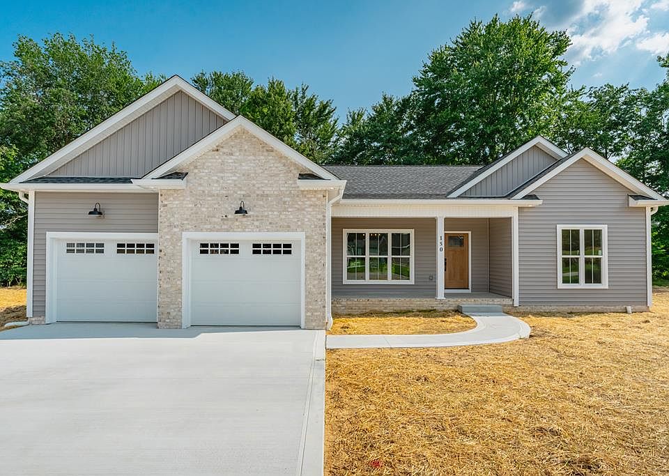 Located on the cul-de-sac of Madisonville's newest neighborhood, 150 Strata Ct sets a new standard for quality & attention to detail. Over 2,000 sq. ft. of living space & an oversized two-door 571 sq. ft. garage, this home features phenomenal upgrades, including designer-profile crown moulding, custom Amish-built soft-close cabinetry with premium granite countertops in kitchen & baths. Open-concept living area is anchored by a beautiful fireplace & offers a seamless flow into the dining & kitchen spaces. A spacious walk-in pantry with custom-built shelving provides exceptional storage. The split bedroom floor plan adds privacy and flexibility, perfect for a variety of living needs. Outside, the composite deck w/upgraded railing provides low-maintenance living with a premium finish.