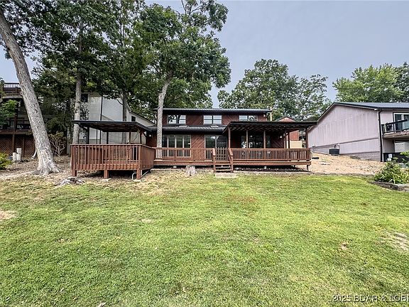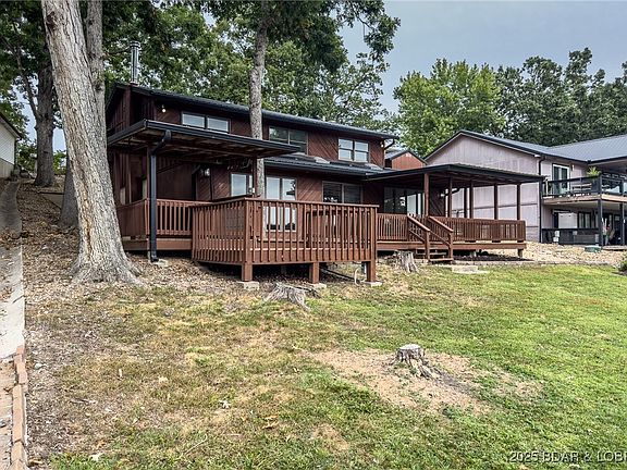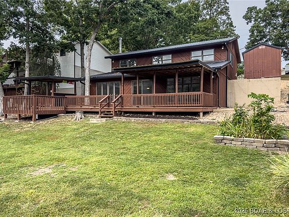Updated lake front home in Fawn Valley Estates! Located at the 46mm of the Osage Arm and sitting on a level lake lot with big cove protection! very clean and tidy neighborhood with community pool, boat ramp water and sewer! Home offers 3 bedrooms, 2.5 baths and has undergone many updates including, newer metal roof, new front door, new heat pump/ furnace, all new vinyl wood flooring, updated bathrooms, new rail and carpet on stairs, all new fixtures and paddle lever door handles, completely updated kitchen with all new cabinets, counter tops, tile backsplash and all new black stainless appliances. All three bedrooms and 2 full baths are on upper level and massive open living/dining/kitchen with half bath and utility room on lower level. Step outside to the enormous lakeside deck that is AWESOME for all your entertaining needs. Deck offering covered and uncovered areas! Gentle walk down to the lake front and your private 1 well dock. Lot has plenty of room for dock expansion if needed! Great parking and even room to build a garage and includes a large shed! Excellent area of the lake and close to many of the lakes bars/Restaurants! Not many homes available with a lot like this!