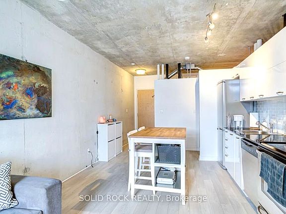 Discover the ultimate urban lifestyle at Westside Gallery Lofts! This spacious 2-bedroom suite perfectly blends industrial charm with modern comfort, featuring airy 9' concrete ceilings, exposed brick and ductwork, and sleek finishes throughout. The open-concept kitchen is ideal for entertaining, while the second bedroom offers a great option for a home office. Enjoy relaxing evenings on your balcony with stunning lake views.Building amenities include fitness centre, party room, guest suites, and visitor parking. Plus, there are EV charging stations in the underground garage. Just steps to 24-hour TTC, the Drake, Gladstone, Ossington strip, great restaurants, and shops. Walk Score: 94, and only a 10-minute walk to the GO at Exhibition Station.Parking included - come see it for yourself!