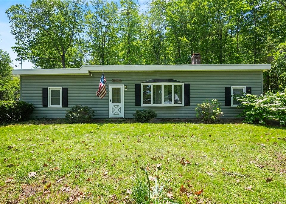 Multiple Offers in Hand, H&B by 5PM 5/27/25 This charming 3-bedroom, 1-bath ranch is nestled on a spacious acre lot comprised of three parcels (see attachments for details). Enter into the inviting fireplaced living room, where a bay window, skylights, and a cozy pellet stove create a warm, welcoming atmosphere. A convenient passthrough leads to the eat-in kitchen, featuring solid countertops and a vaulted ceiling with skylight for added natural light. Down the hall, you'll find a tiled ¾ bath with a ceramic-tiled shower stall, three comfortable bedrooms, and a bright, three-season room with tile flooring—perfect for relaxing or entertaining year-round. Outside, enjoy ample parking, a storage shed, and plenty of outdoor space to roam and explore. With serene views of beautiful Hickory Hills Lake, this home offers access to water recreation activities, such as boating, swimming and fishing. Don't miss this rare opportunity to own a home in one of the area’s most desirable lake communiti