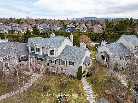 Main Floor Living in the Heart of Thornbury! Well-maintained 2-bedroom Applejack condo offering bright, functional living with a walk-out basement and private backyard. Freshly painted and filled with natural light, this home features an open-concept main floor with vaulted ceilings, a skylight, and a cozy gas fireplace. Walk out to a private deck overlooking mature trees and peaceful green space, ideal for morning coffee or evening relaxation. The main floor primary bedroom and full bath provide convenient, accessible living. The lower level offers a spacious family room with another gas fireplace, a guest bedroom, 3-pc bathroom and a walk-out to a private patio. A newer washer and dryer add everyday convenience. Enjoy Applejack's fantastic amenities including two outdoor pools, tennis and pickleball courts, and beautifully landscaped grounds. Just a short walk to downtown Thornbury's shops and restaurants and minutes to Georgian Bay, the Georgian Trail, golf, and area ski clubs including Blue Mountain and the private clubs along the escarpment. Perfect for full-time living or a weekend ski retreat in one of Thornbury's most desirable communities.