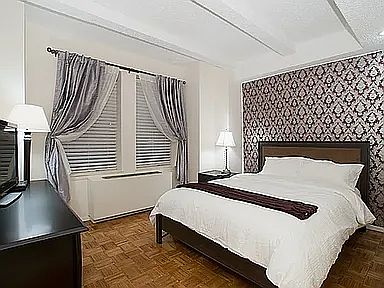 Luxury Furnished One B/R -LUXURY BUILDING very bright, city view from both living room and bedroom. From this apartment you can walk to Central Park, Times Square, and Rockefeller Center, Broadway shows, shopping, restaurants and much more! Apartment is located in a luxury elevator doorman building with full time concierge, on site laundry facilities, dry cleaner and exercise room. Apartment features a Queen Size bed, sofa, fully equipped kitchen, private bath and a separate dining area. Bed and bath linens are provided as is kitchen cookware, cutlery, dishes and glasses. call to view in person/virtual.