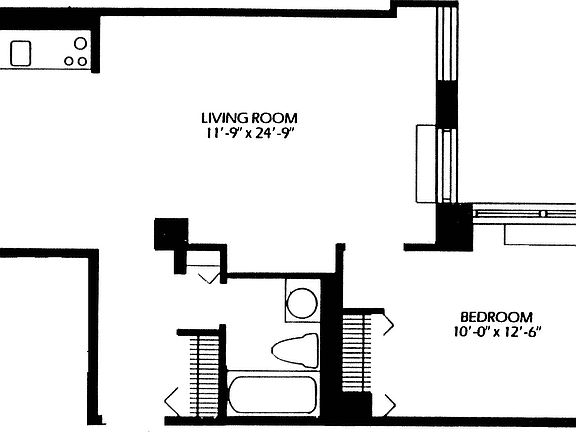 The renovated bathroom is located off the foyer and features Carrara marble tiles throughout accented by a dark wood vanity, white vanity top, and a brushed nickel finishes and has two entry closets; one for linens next to the bathroom and a large entry closet for guest's coats. The spacious living room ( 24'.9" x 11'.9") features two windows outfitted with custom charcoal blinds leading to the private bedroom ( 10.' x 12'.6") with a custom closet for efficiency and space.