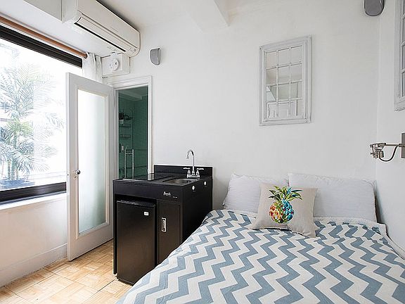 Welcome to your perfectly appointed CONDO pied-a-terre in the heart of the city! Very low condo fees. This adorable, fully furnished studio is thoughtfully equipped with everything you need: mini fridge, sink, cooktop, housewares, linens, desk/chair, and a comfortable full-size bed. Huge, sound proof brand new panorama size sliding window gives the quiet unit tons of light and open it to a little outdoor space for flowers and a split unit AC, Large Roku TV and central heating make this home a cozy dream location steps from times square.