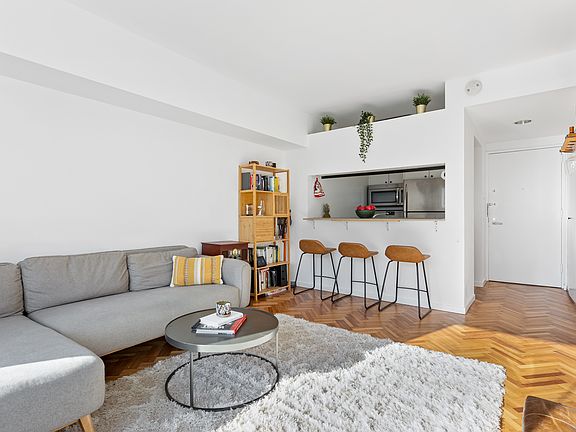 The brightest one-bedroom you will see on the market, easy flow, and plenty of space for all your furniture. You have a walk-in closet that leads to the marble bathroom. A large coat closet and a nicely renovated kitchen with a dishwasher.