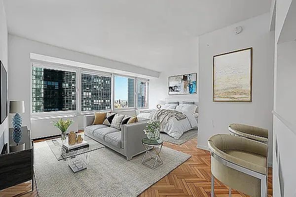 #4406 is a spacious alcove studio located on a high floor of the renowned CitySpire Condominium. The home features open northern city views, a pass-through kitchen, and ample closet space. A washer and dryer are conveniently available on every floor.