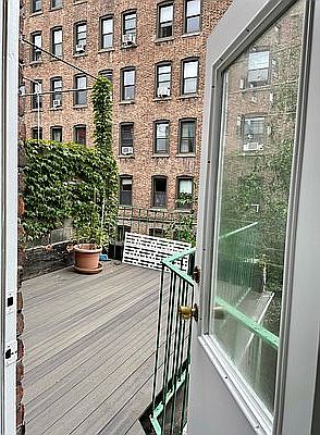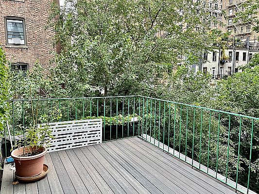 Enjoy your own incredible *private deck* all year long! Exposed brick in the living room, 10'+ high ceilings, through-the-wall AC, built-in bookshelves, excellent storage, a dishwasher and hardwood floors. Great sunlight from south-facing windows and this fantastic apartment is RENT-STABILIZED too! A rare opportunity. *This apartment has a broker's fee. Email inquiries only.* 150 West 74th Street is a well-maintained walk-up building with laundry on a beautiful Upper West Side block. *Pet policy: cats only.* Video walkthrough upon request and available immediately.