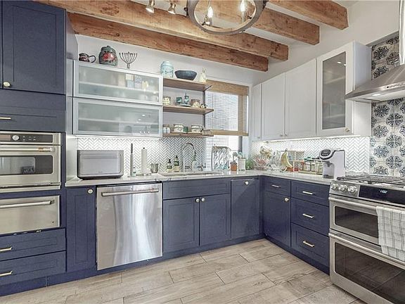 Modern fixturesExposed brick beamsCoved ceilingsPartial water viewsCustom barn doorsSpacious kosher kitchenImported ceramic tiling