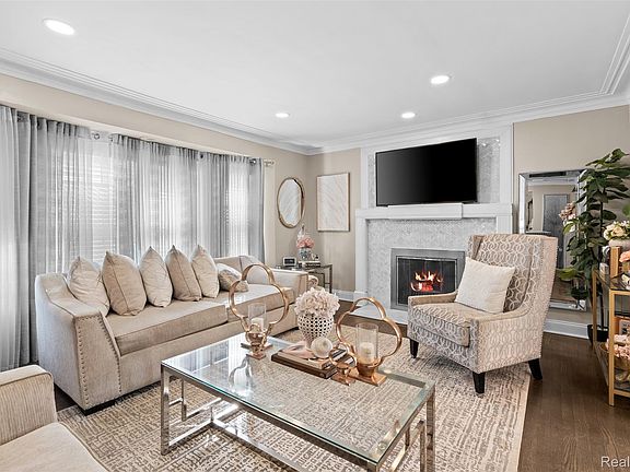 Modern Luxury Meets Classic Detroit \ 4BR Brick Home with First Floor Suite & EV Parking Welcome to 150 W Hildale Ave-a fully renovated 4-bedroom, 2.1-bath brick home offering high-end finishes, thoughtful upgrades, and timeless character, just minutes from Sherwood Forest, Green Acres, and the University District. Step into a spacious living room with a stunning wood-burning fireplace, recessed lighting, USB/ USB-C outlets, and a custom wood built-in credenza that adds both style and smart storage. The semi-open layout flows into a light-filled dining area with a matching built-in-perfect for entertaining or everyday ease. Original hardwood floors run throughout, highlighting the home's blend of warmth and sophistication. The oversized eat-in kitchen features quartz countertops, a large island, premium appliances, and abundant cabinetry-ideal for hosting or casual meals. A rare first-floor primary suite includes a fireplace, walk-in closet, updated bathroom with walk-in shower, and direct access to a private back deck. Upstairs, you'll find three spacious bedrooms. a full bath with filtered shower water, and a beautiful balcony off one of the rooms. Downstairs, a finished basement with private exterior entrance and powder room offers flexible space for guests, a gym, or office. Other highlights include central air and heat, mostly new windows, & a newer roof (2017). Outside, enjoy a manicured lawn, detached garage, and covered carport with a 220V outlet for electric vehicle charging.