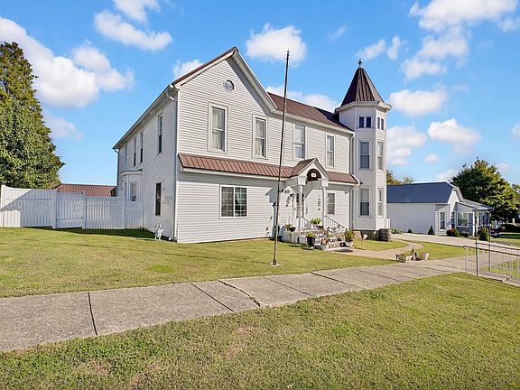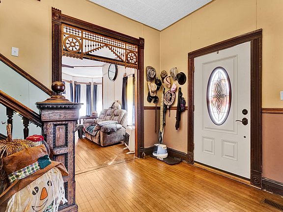 Step into timeless character with this beautifully maintained 4 bed, 2 bath historic home featuring stunning hardwood floors throughout. Enjoy a spacious living room, formal dining area, and a large renovated kitchen complete with a generous pantry. Custom trim and baseboards add warmth and craftsmanship to every room. The home offers roomy bedrooms, an unfinished basement for extra storage, and a large wrap-around porch perfect for relaxing or entertaining. Sitting on a sizable backyard with a two-car detached garage, this property offers both charm and functionality — and it’s priced to sell!