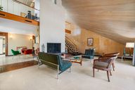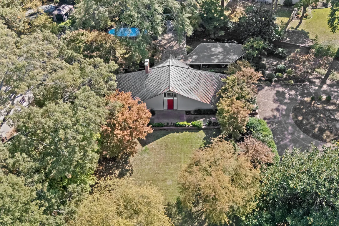 Specimen treesHyperbolic paraboloid roofLofted den with fireplaceSunny breakfast roomBrick floorsExtensive groundsSoaring ceilings