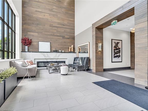 Welcome to Unit 313 in one of Guelph's most luxurious condominium complexes - River Mill! This 1 Bed + Den with a MASSIVE TERRACE for a unit of this size is truly a rare find. As you enter the unit you are greeted by an open concept layout, high end finishes, soaring ceilings, and an abundance of natural light. Adjacent to the main entry is a beautifully appointed U-shaped kitchen overlooking the living area. Off of the living area to the left you have a very useful, fully enclosed den space that can serve multiple purposes, but is currently being used as a home office. To the right you have a gorgeous 3-piece washroom, as well as the bright and spacious master overlooking the terrace that extends the full length of the unit. Walking back out to the main living area, your eyes will automatically be drawn to the stacked stone gas fireplace and floor to ceiling windows overlooking the expansive terrace. Before you head outside though, it's worth appreciating two updates: the new medium-tone engineered hardwood floors, replacing the old red-tone hardwood, as well as moving the door into the master bedroom from the wall opposite the fireplace, to it's current location. These two changes have had a huge impact, both modernizing the space, while allowing for a much more practical living room layout! Finally, as you exit the unit onto your private terrace, you will understand what separates this condo unit from the rest. It offers the room for a large patio set, BBQ, plants, sit-up bar top, and whatever else your heart desires to enjoy the outdoors from the comfort of your condo! Lastly, this top-notch building also offers an array of luxurious amenities such as a fully equipped fitness centre, guest suites for visitors, a theatre room, library/lounge, and a party room equipped with a bar/lounge/pool table which accesses the stunning rooftop patio complete with multiple seating areas, bbq, and breathtaking views of downtown Guelph!