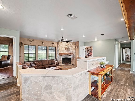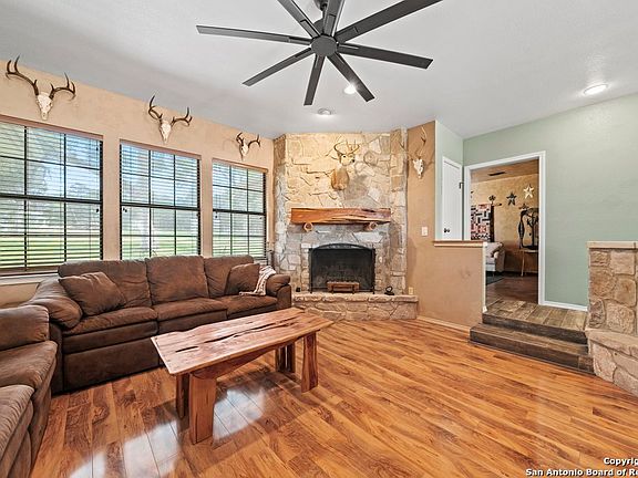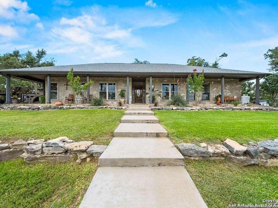 Escape to your own private sanctuary in the heart of the Texas Hill Country with this stunning estate. Situated on 6.92 acres of lush landscape, this 2520 square foot home offers the ultimate retreat from the hustle and bustle of city life with no restrictions or HOA. As you enter through the fully fenced property with its automatic private gate, you'll immediately feel a sense of peace and seclusion. Step inside to discover a newly updated kitchen featuring top-of-the-line stainless steel Thermador appliances, a convenient sonic ice maker, and luxurious quartz countertops, perfect for both culinary enthusiasts and entertainers alike. Throughout the home, you'll find a seamless blend of tile and wood flooring, adding warmth and charm to every corner. No detail has been spared in this meticulously maintained property, with a brand-new roof, gutters, and a new well pump ensuring worry-free living. Plus, with two AC units, you'll stay comfortable year-round. For those with a passion for gardening or DIY projects, a workshop, greenhouse, and two gardens await your creativity. And for the nature lover, four beehives stations with one hive already actively producing nature's golden honey. Need space for guests or extended family? The separate mother-in-law/guest cabin offers the perfect retreat, complete with its own washer and dryer connections and even offers the potential to use for rental income. Storage is abundant, with plenty of room for vehicles and equipment provided by the circular driveway and additional parking spaces. Experience the tranquility of country living in this secluded oasis, where every amenity has been thoughtfully designed for your comfort and enjoyment. Don't miss your chance to own this extraordinary property. Schedule your private tour today and discover the true meaning of Texas Hill Country living.