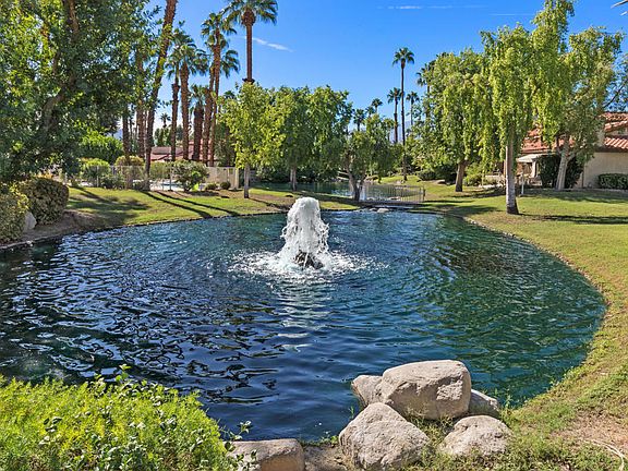 OPEN HOUSE! Friday, 11/25/22, 1:30pm - 3:30pm and Saturday, 11/26/22, 1:00pm - 3:00pm.Welcome to the beautifully-intimate Park Palms! Only 100 units in this gated community located in the heart of Palm Desert. This home has been cared for with much love. Great corner location. Private patio off both the living room and master suite which gives views of lake, stream & footbridge to nearby community pool. Lovely 2 bed, 2 bath, 2 car garage end unit. Bedrooms with new carpet and New Paint everywhere. Park Palms is a desirable gated community, centrally located close to all the best of Palm Desert. Amenities include a clubhouse, workout room, community pools and spas, tennis, pickle-ball & gorgeous grounds! And, it is centrally located in the heart of Palm Desert, not far from The McCallum Theater, Living Desert, El Paseo shops & restaurants, Five Star Resorts and golf courses including the highly acclaimed Desert Willow Golf Resort. Don't miss this one!