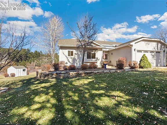 The most immaculate and perfect home you will see this year! Amazingly beautiful hardwood floors greet you as you enter. Soaring ceilings in the large Living room with views of the open area behind and a warm fireplace to enjoy. True dining room for you and your guests. Updated kitchen with gas range, new cabinet fronts and granite counters. Walk out to the covered deck area, then the full deck across the back to enjoy the peaceful quiet and privacy all around the back. Love the retractable awning as well! Beautiful master suite with walkout to the deck. Attached 5 piece bath with separate shower and a Claw Foot Tub! 2nd bedroom and bath on the main, plus a full separate laundry room. The basement is finished with 2 more bedrooms, a bath, pool table, theater area with surround sound, and a walkout to the private oversized patio. Tons of storage inside. Oversized garage with extra storage area, plus a perfect shed in the back for the toys. Almost half an acre of beautiful trees and serenity in Woodmoor. New Items: Brand new Class 4 Roof. New Furnace. New Water heater. Updated Windows. Only the very best for this home! And don't forget the Award Winning D38 Schools! A Home this immaculate and updated do not come along often!