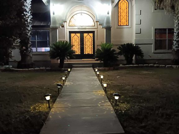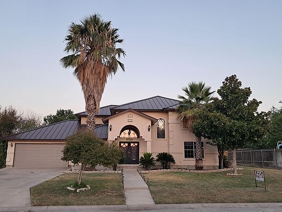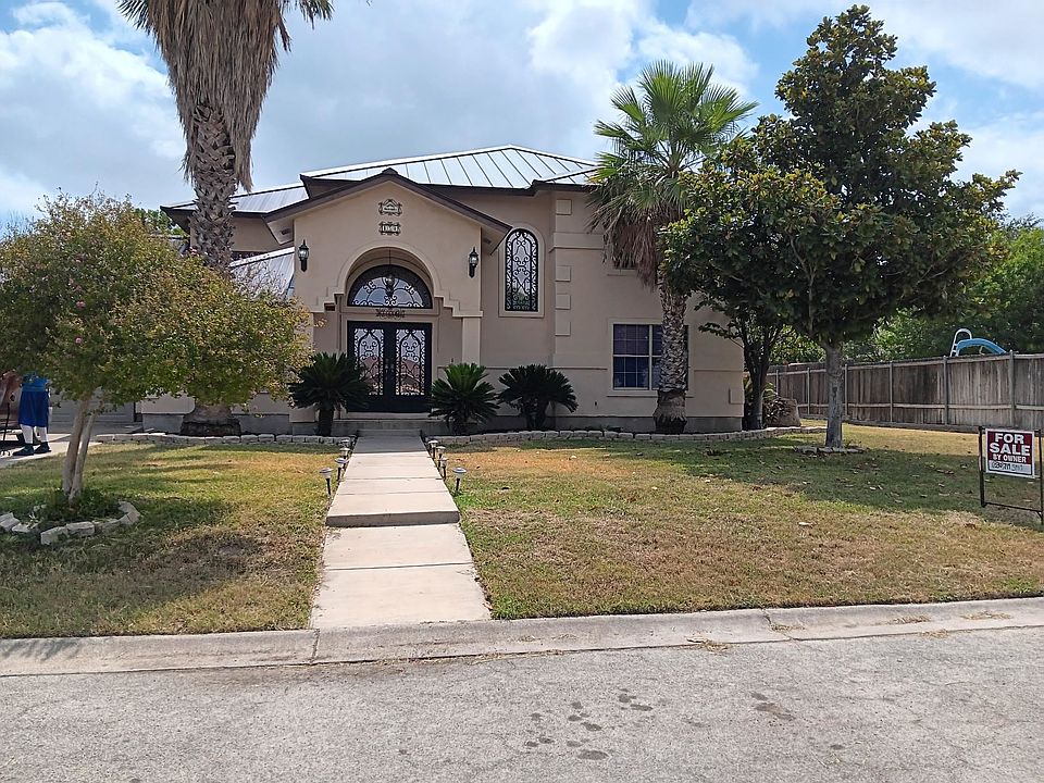 Beautiful Spanish-style home with pool in a great neighborhood. Kitchen is newly remodeled with designer granite countertops, glass backsplash, huge granite composite sink, instant hot water dispenser, and over-range microwave/venthood. Large in-ground pool, recently repainted, Entertainment room with in-wall surround sound speakers and projector displays 100 inch screen. Backyard is surrounded by a concrete wall for extra privacy. Master bedroom suite is downstairs along with the kitchen, laundry room, dining room, breakfast nook, and family room with 1/2 bath. Formal dining room can be easily repurposed as an office. Upstairs walkway shares an open view of the family room from above and links the entertainment room to the two guest bedrooms and upstairs bathroom. Attached 2 car garage contains an additional storage room. Palm trees and lush grass in the front yard and plenty more mature trees including palms, magnolias, redbud, oak, and ash. Shade is extremely important in the hot Texas sun!